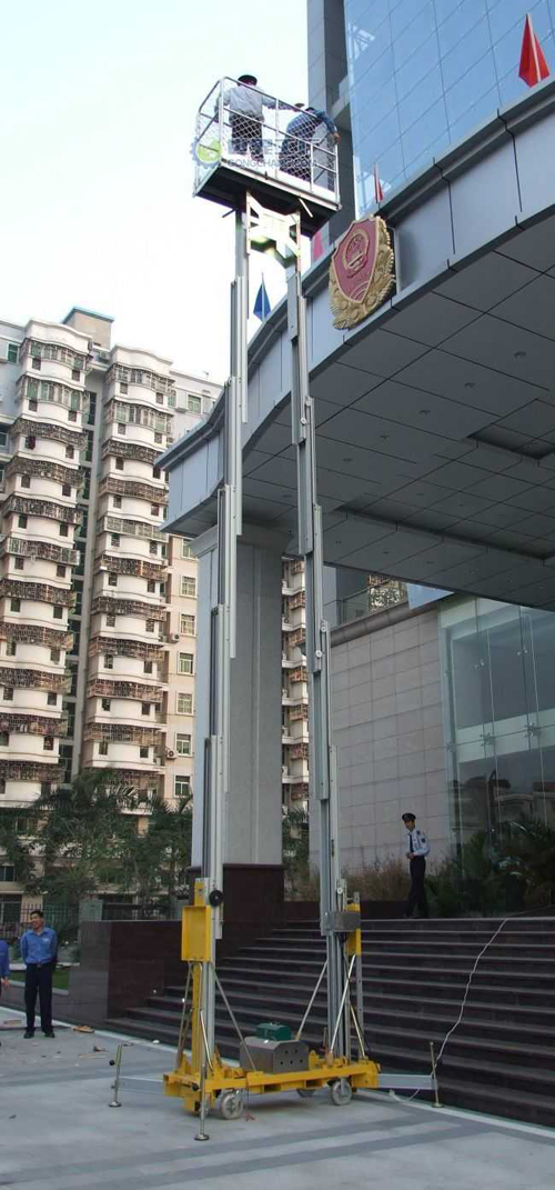 鋁合金升降機(jī)主體采用高強(qiáng)度鋁合金材質(zhì)構(gòu)成,具有造型美觀、體積小、重量輕、升降平衡、安全可靠等優(yōu)點(diǎn),廣泛用于工廠、賓館、餐廳、車(chē)站、機(jī)場(chǎng)影劇院、展覽館等場(chǎng)所。該升降機(jī)承載能力強(qiáng),適合于兩人(可攜帶一定的重量工具和材料)同時(shí)登高作業(yè);還可根據(jù)不同環(huán)境訂制成各種非標(biāo)產(chǎn)品,以滿足不同需要;是保養(yǎng)機(jī)具、油漆裝修、調(diào)換燈具、電器、清潔保養(yǎng)等用途的安全伴侶。