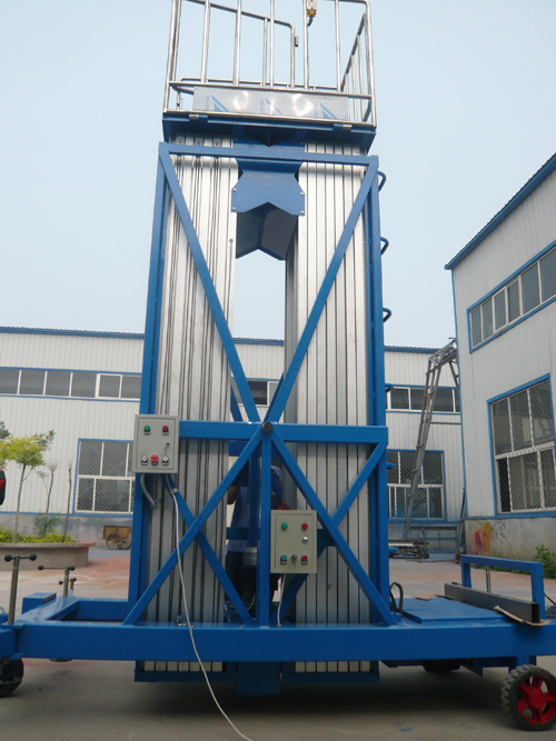 鋁合金液壓升降機且耗電少、無污染、工作時不傷地面,可用于貼墻工作及探出作業(yè),工作無死角。鋁合金液壓升降機廣泛適用于星級酒店,大型超市等各行業(yè)大廳、廠房內(nèi)的高空清潔和電線、照明安裝維護類高空作業(yè),鋁合金液壓升降機根據(jù)其自身升高度可分為:單桅柱式升降機(4-10米),雙桅柱式升降機(8-14米)跟多桅柱式升降機(12-22米)。