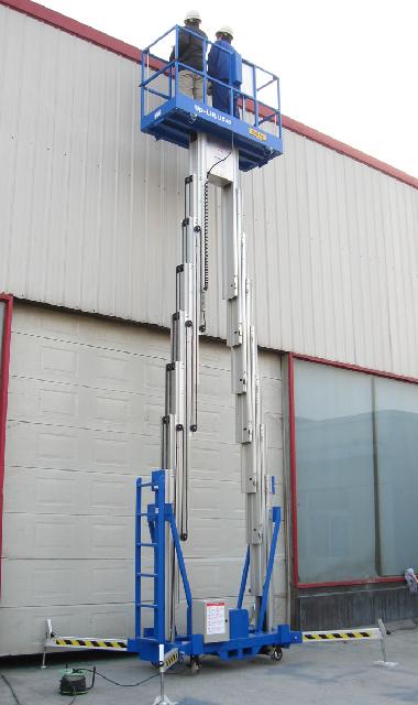 8米雙柱鋁合金升降機價格除了價格便宜外,雙人升降臺可以在狹窄通道的靈活運行,使其能完成許多大型剪叉式升降臺不能完成的工作。可單人或雙人操作,雙柱的平臺面提供足夠的空間,便于操作人員作業,擺放工具進行維修,清潔等工作。鋁合金升降機具有剛硬的升降桅柱系統,其特征是:高強度的鋁合金桅桿,互鎖系統,可伸縮柱及安全系數大于10:1的高強度的起重鏈,并設有鋼絲安全保護系統可用來加強力度及可靠性能,維修方便,其焊接式高強度的鋼底座適合于惡劣的工作環境。