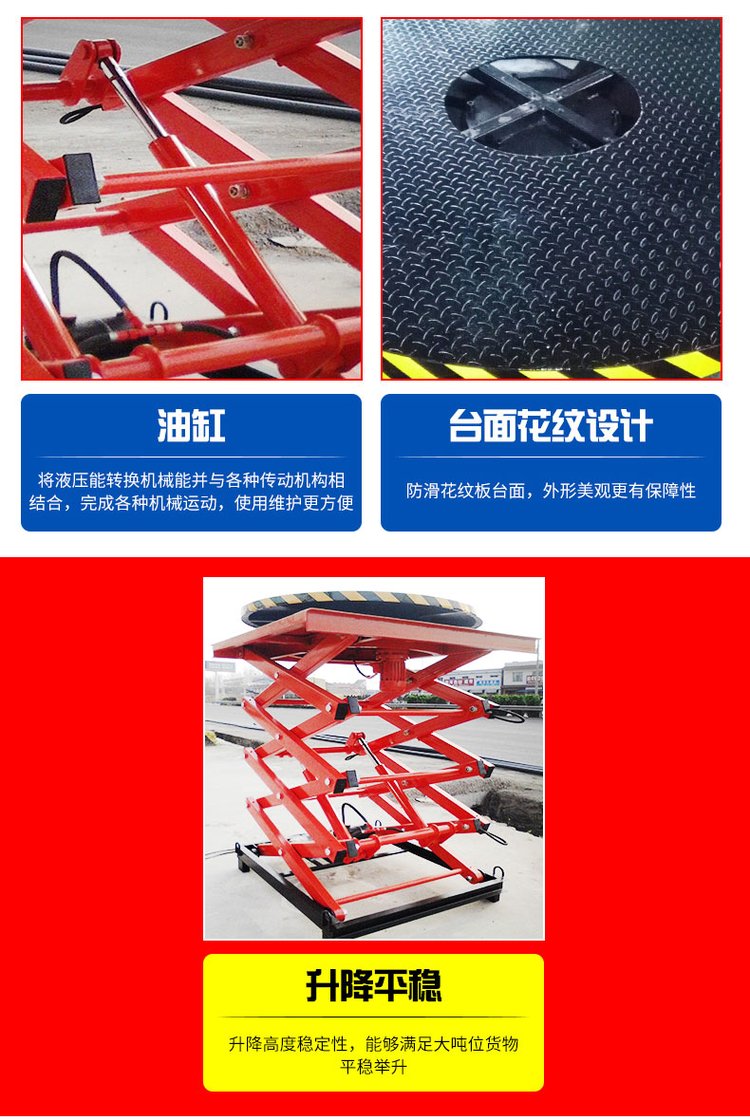 2、升降高度穩(wěn)定性,能滿(mǎn)足大噸位貨物平穩(wěn)舉升;