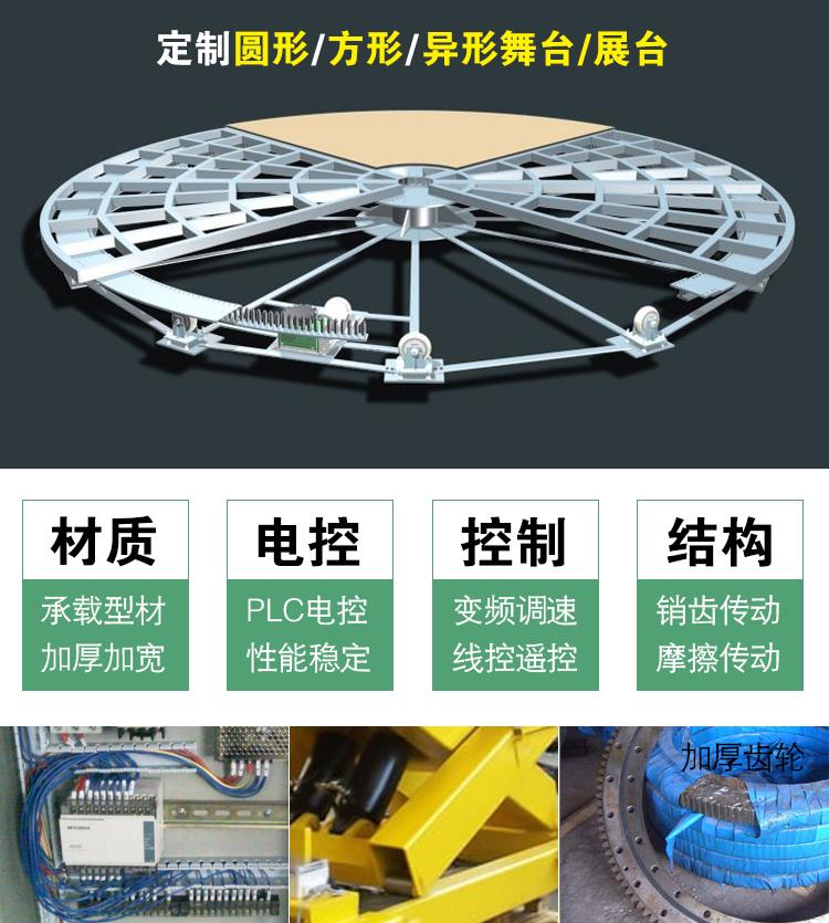 旋轉展臺也稱為汽車旋轉展臺,固定式汽車旋轉展臺主要用于車展、汽車銷售商的4s店、汽車生產商等展示汽車用。旋轉展臺突出的優點是銷齒傳動,運行平穩,承載量大,而且無噪音污染免維護。